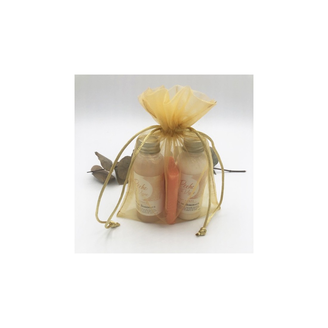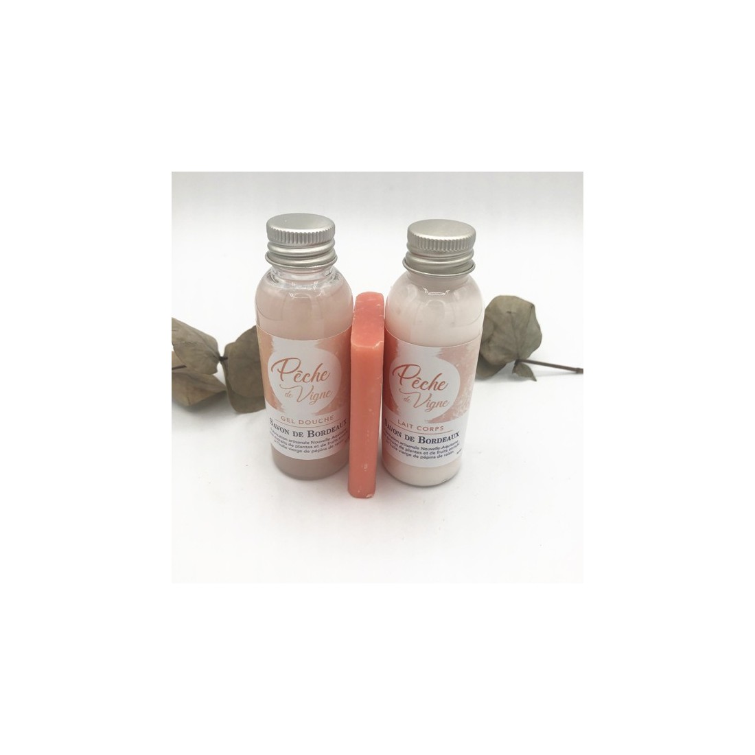 L'Indispensable comprend un gel douche et un lait corps en 50ml chacun, ainsi qu'un savon en 25 grammes.