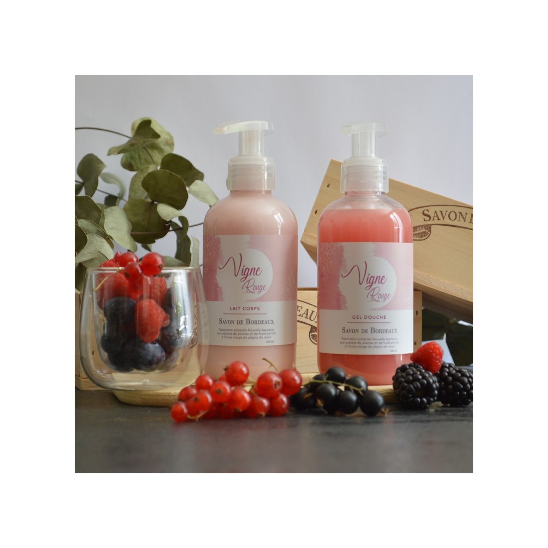 Ce duo Vigne Rouge comprend un gel douche artisanal et le lait corporel hydratant de 200ml, chacun.